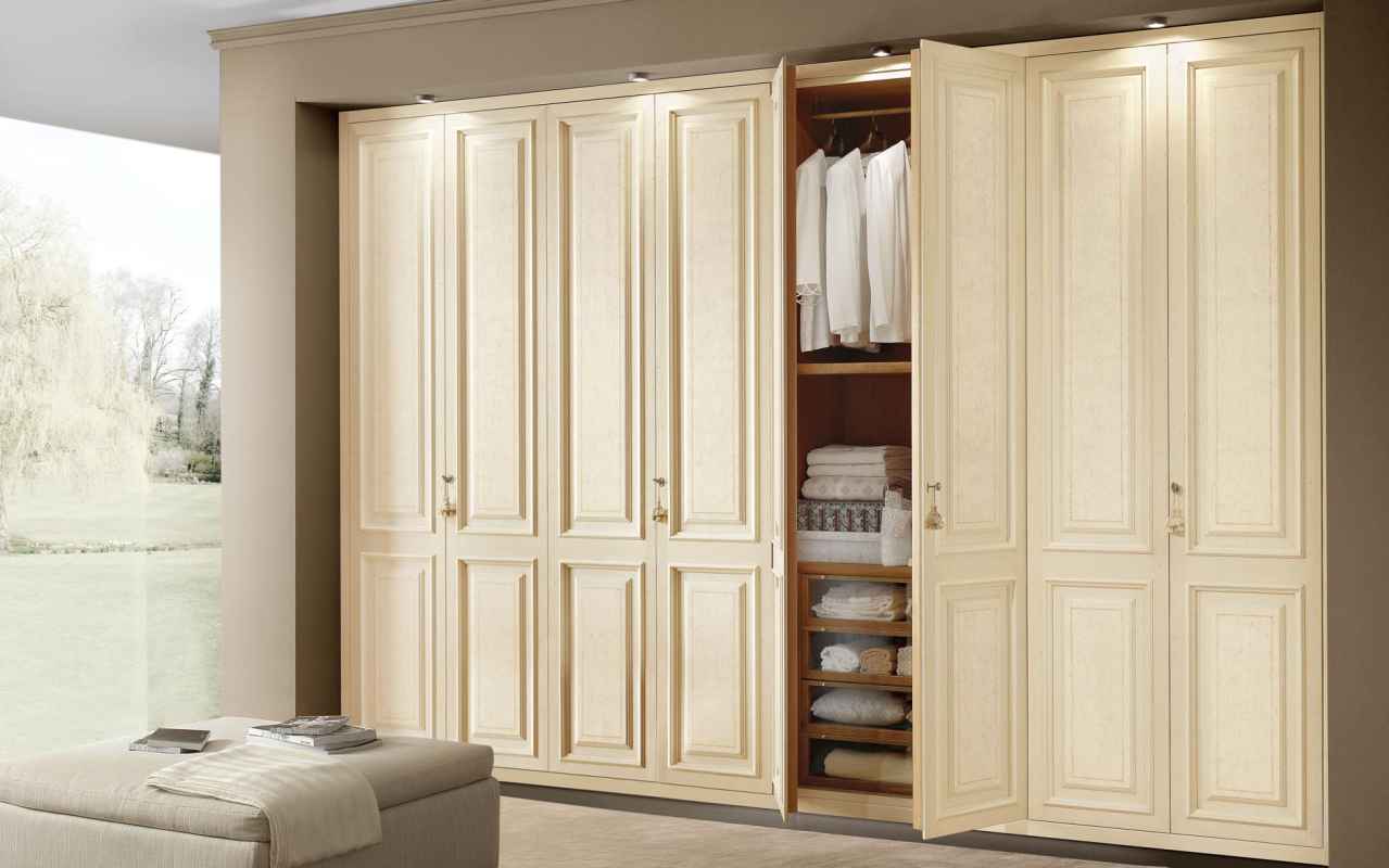 Данный проект представляет из себя четырёх секционный и восьми дверной шкаф сделанный из МДФ крашенный, а также при изготовлении данного изделия была использована фрезеровка. Данное изделие было изготовлено в классическом стиле специально по требованию заказчика. Также возможна дополнительная установка различной фурнитуры, напримере радиусных полок или антрелось.